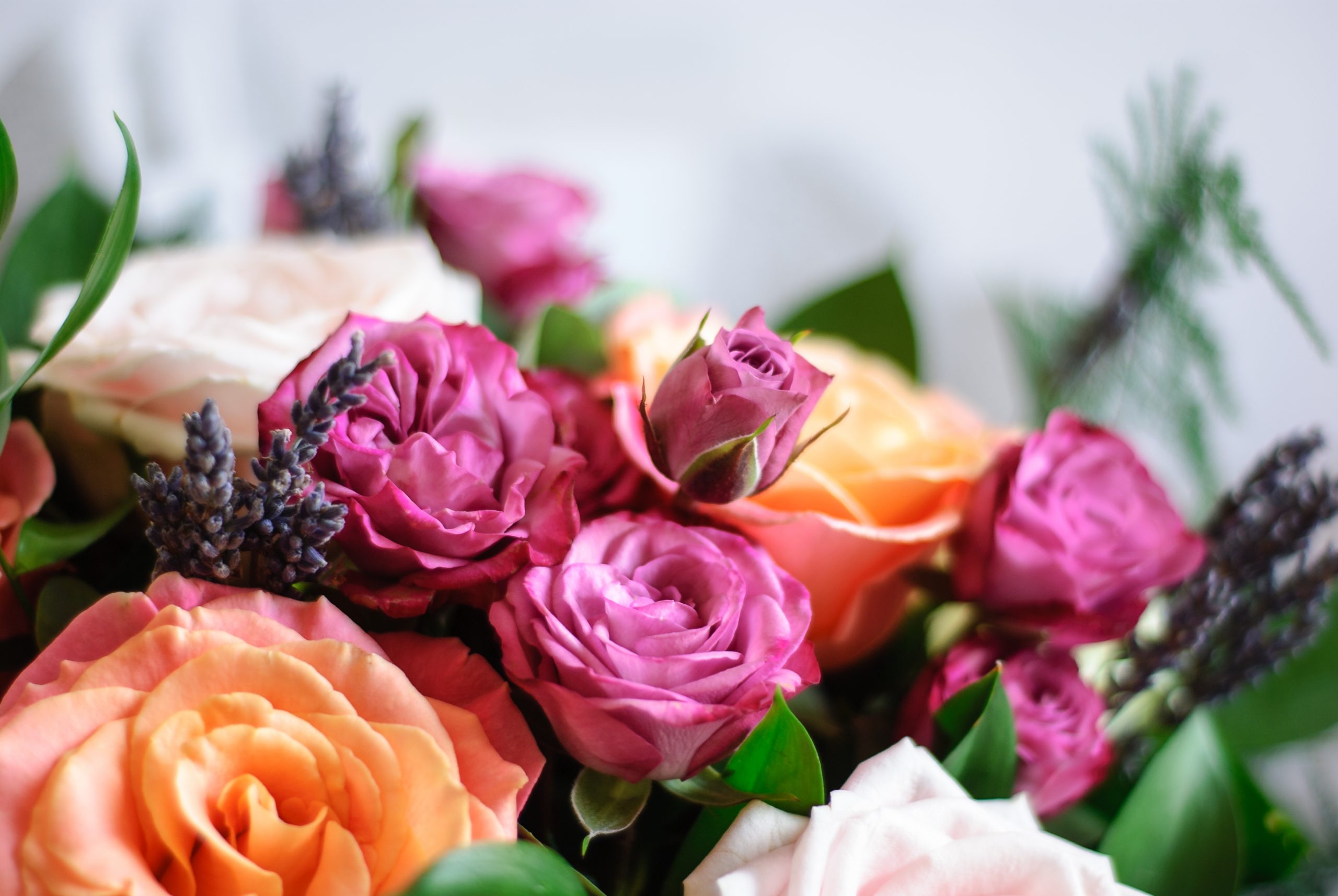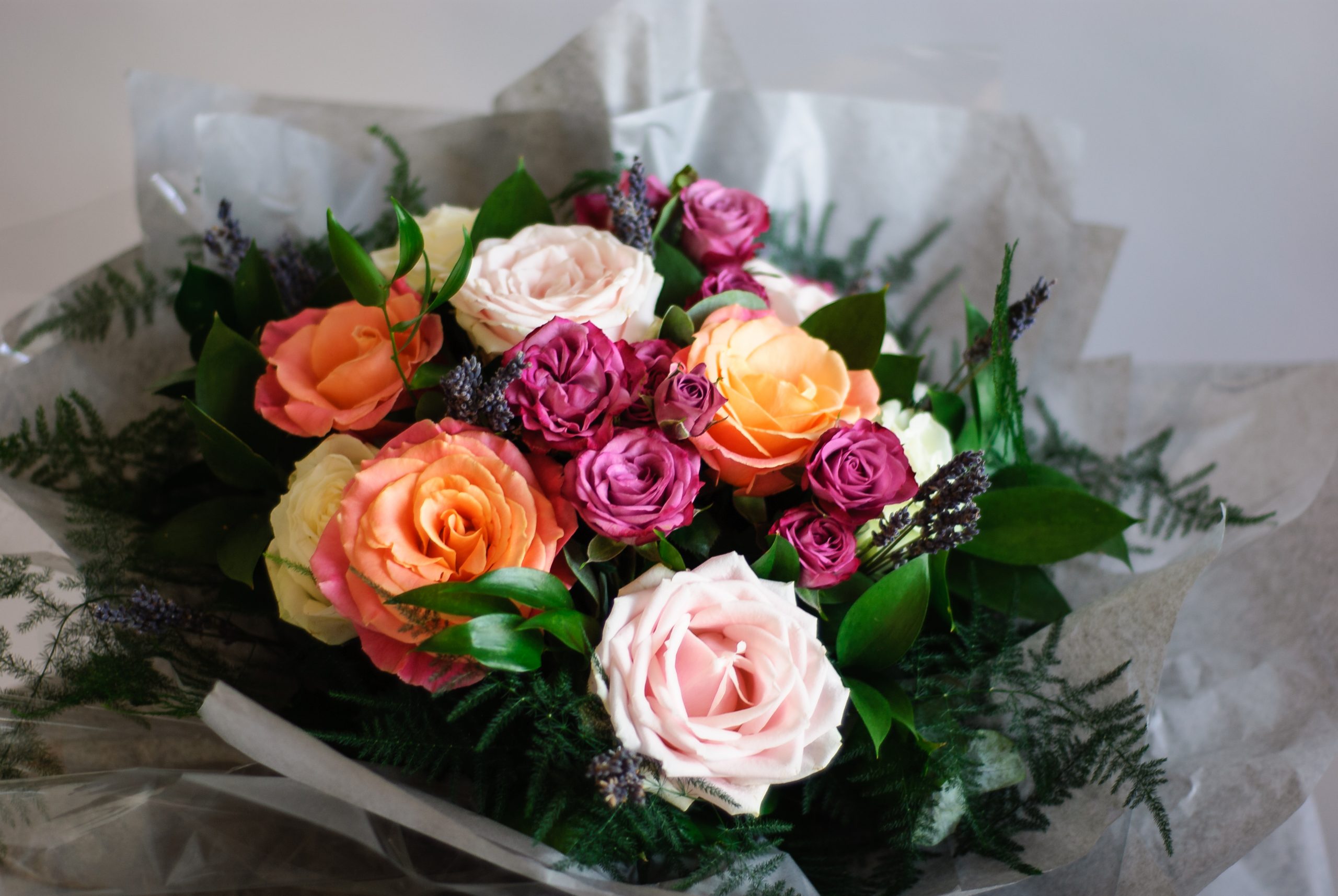Please note: The picture shown is to the value of £60 and is an example of The Rambling Rose, designed to give you an idea of the bouquet style. Each order is lovingly created by hand and individually designed using the best of the season, so will vary from the image here.